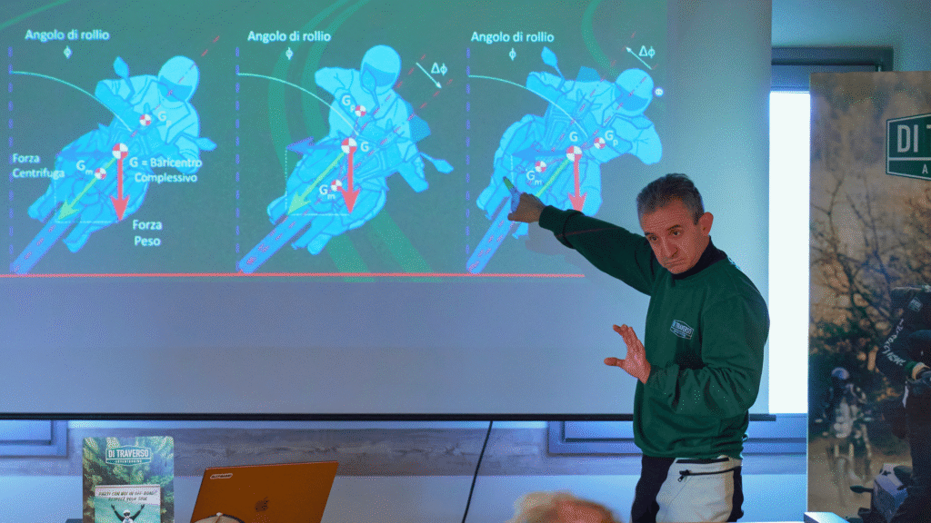 L’uso corretto del corpo per guidare la moto, non farti trasportare. Impari a comunicare con la moto attraverso il peso, la postura, lo sguardo – non solo con le mani.